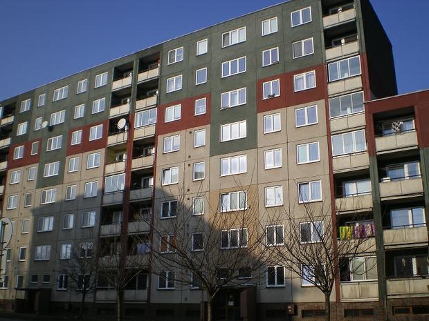 Tmelení dilatačních spár na panelovém domě v Předmostí. ...