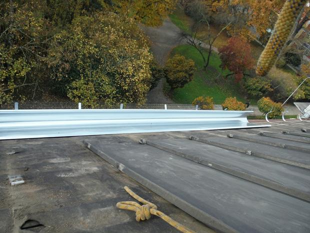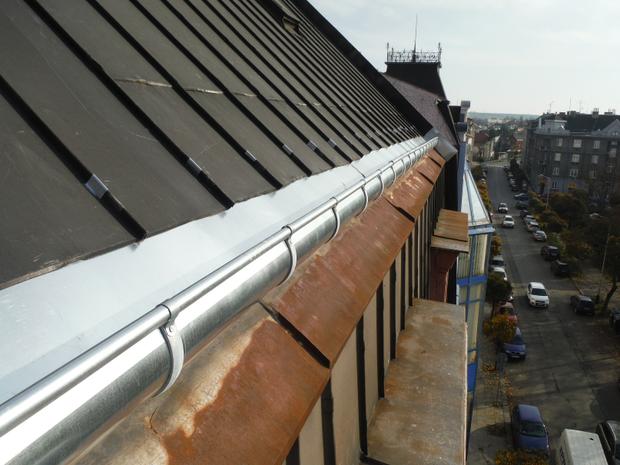 Výměna nadokapního žlabu a montáž oplechování atiky